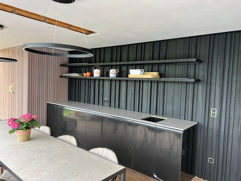 De waterdichte en onderhoudsvriendelijke eigenschappen maken deze afwerking bijzonder geschikt voor zowel binnen- als buitengebruik. Vuil kan zich nergens ophopen, omdat er geen voegen zijn. Dit maakt het niet alleen praktisch voor ruimtes zoals de keuken of badkamer, maar ook voor meubels die buiten worden gebruikt.