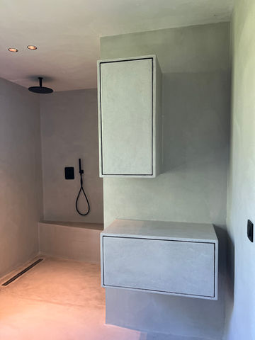 Microcement meubels zijn extreem duurzaam en bestand tegen krassen, stoten en vocht. Dit maakt ze perfect voor dagelijks gebruik in verschillende ruimtes. Bovendien is microcement waterdicht en gemakkelijk schoon te maken, waardoor het ideaal is voor keukens, badkamers en buitenmeubilair.
